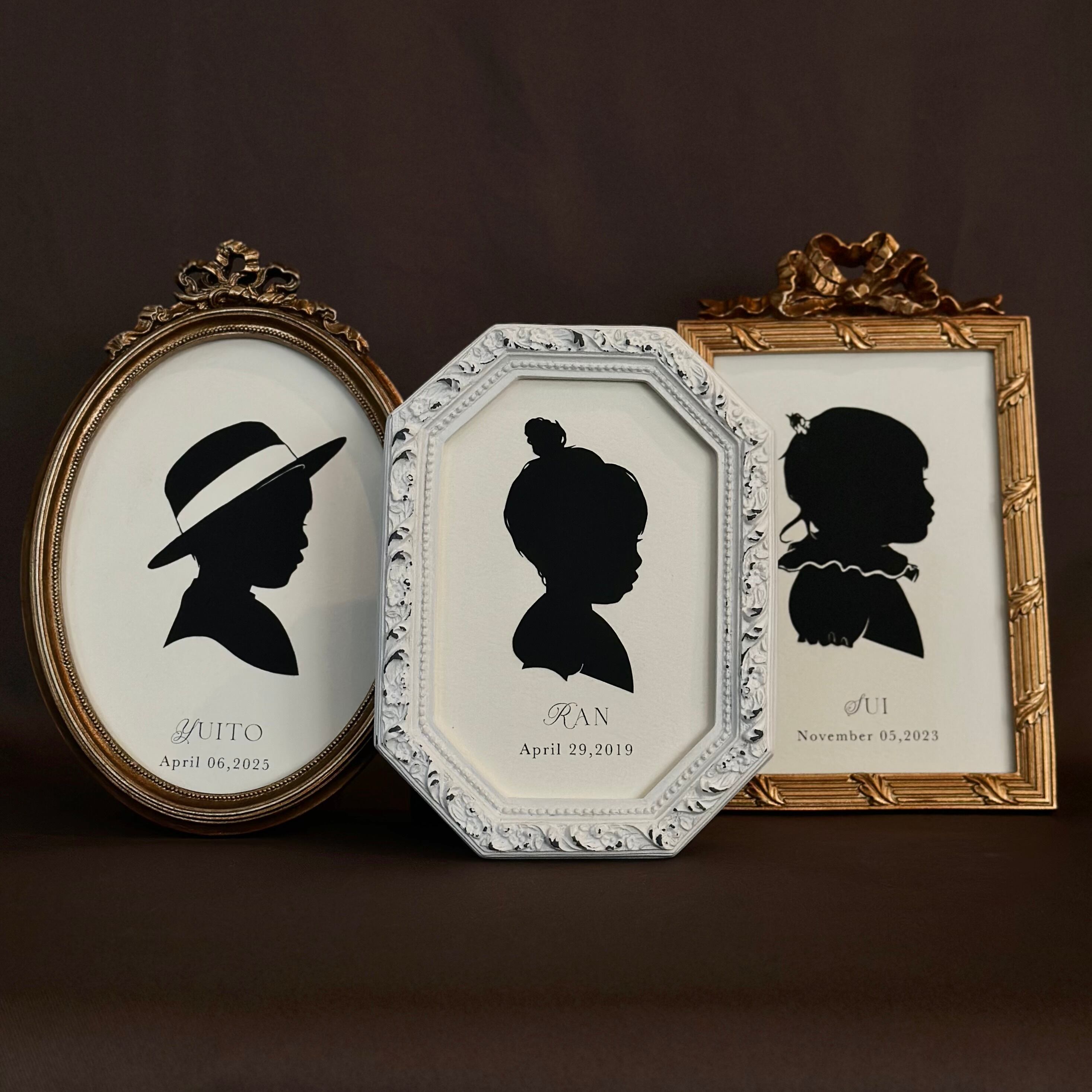 お子さまの横顔シルエットを使用したオリジナルフレームです。